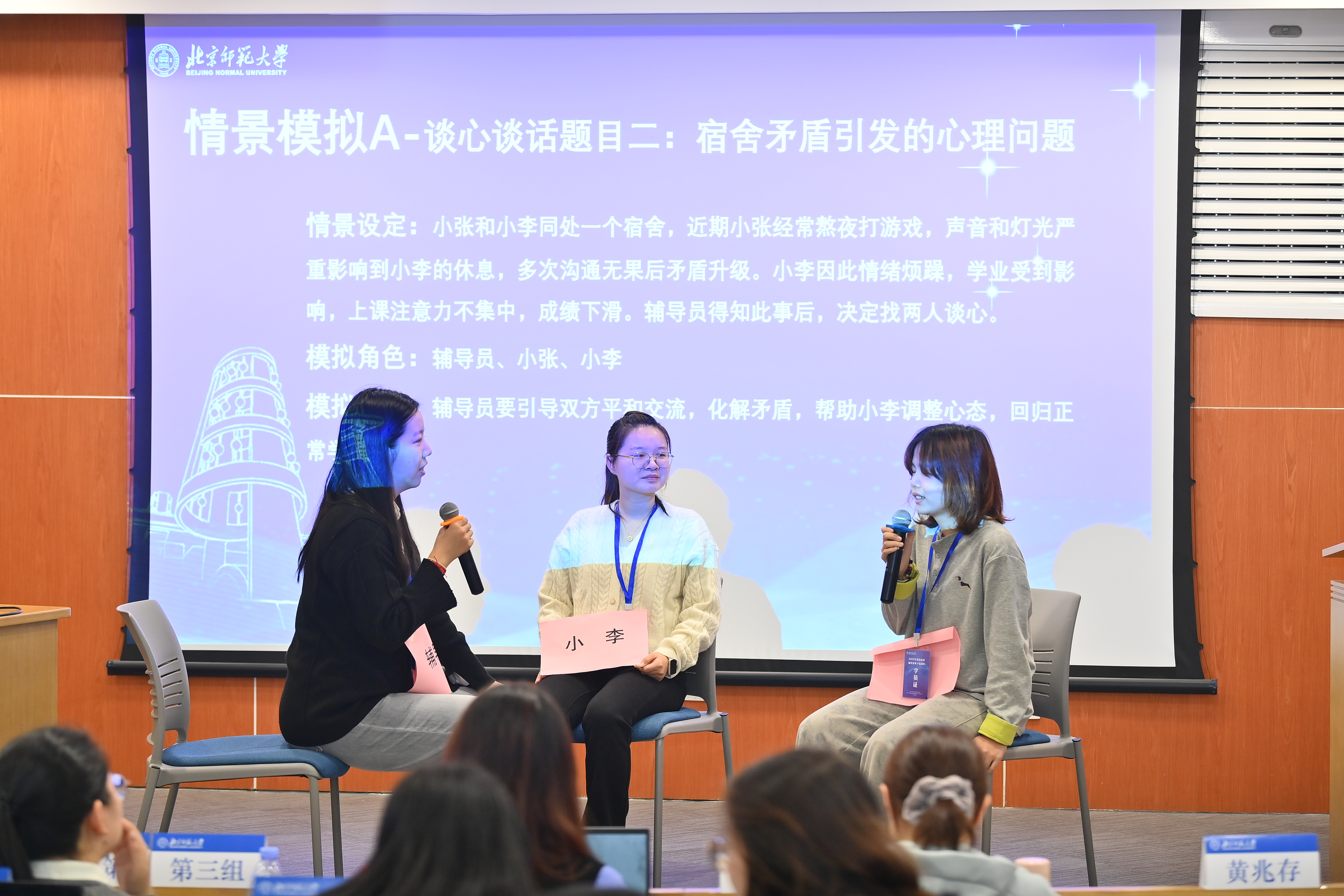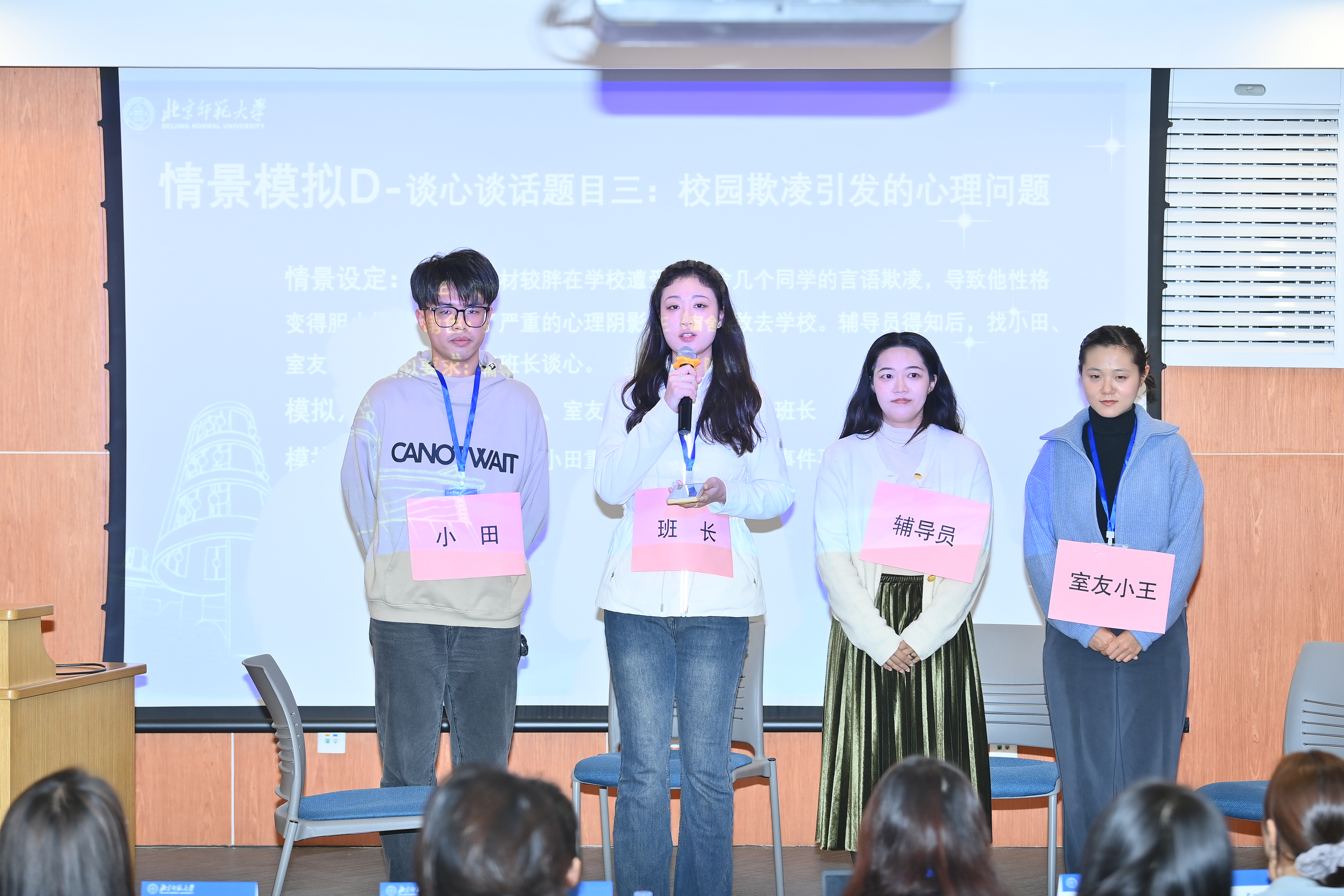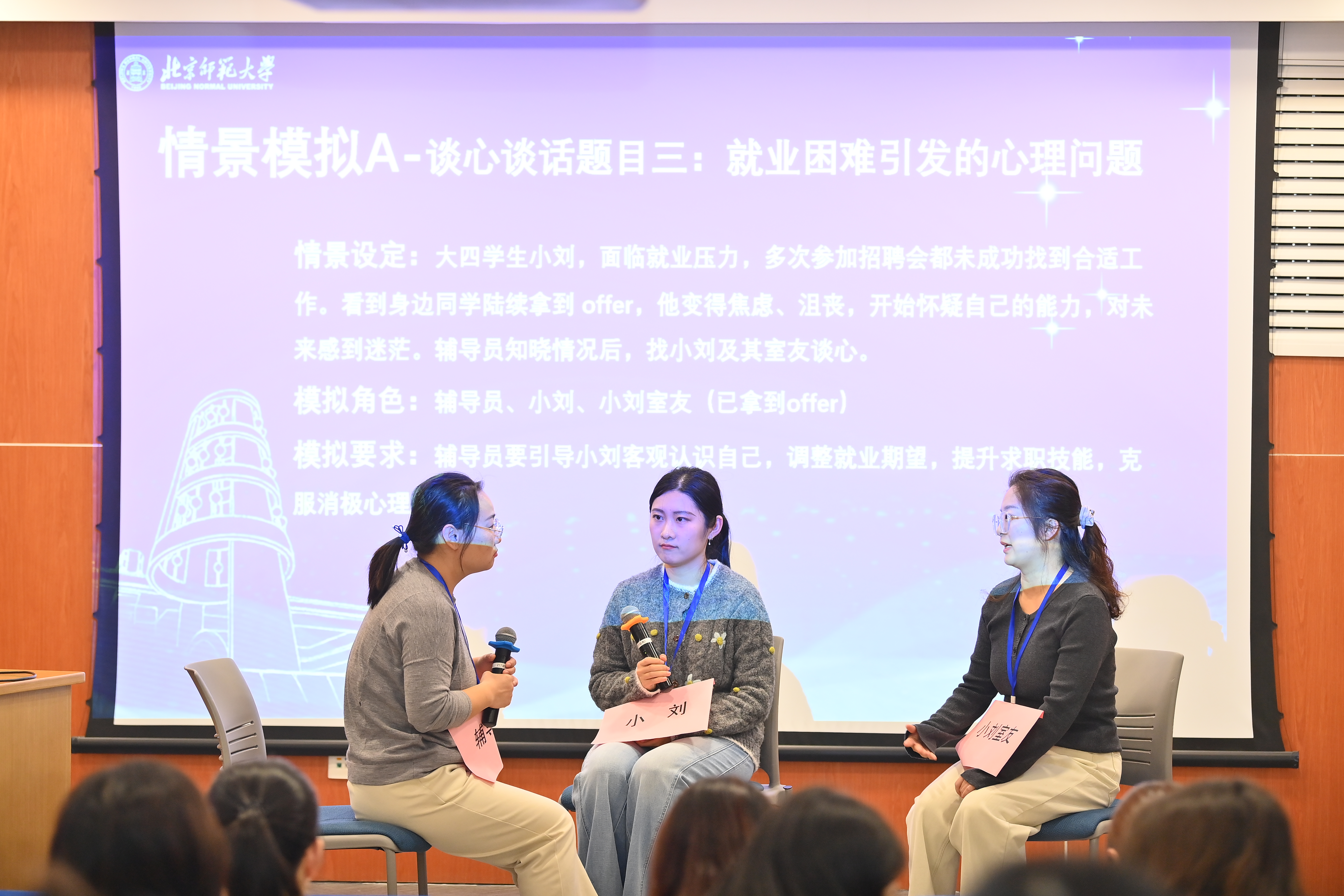 在情景模拟环节,北京师范大学学生心理咨询与服务中心王东升副研究员与大家共同剖析典型案例,提炼干预策略,提升心理疏导综合能力,实现以学生为中心的精准化心理支持。分组研讨中,各组围绕“大学生心理危机的识别与干预”“运用大数据与人工智能构建心理危机预警体系的精准化”等主题展开深入交流,分享在心理危机识别干预方面的经验做法,共同探讨如何有效开展大学生心理健康教育工作。